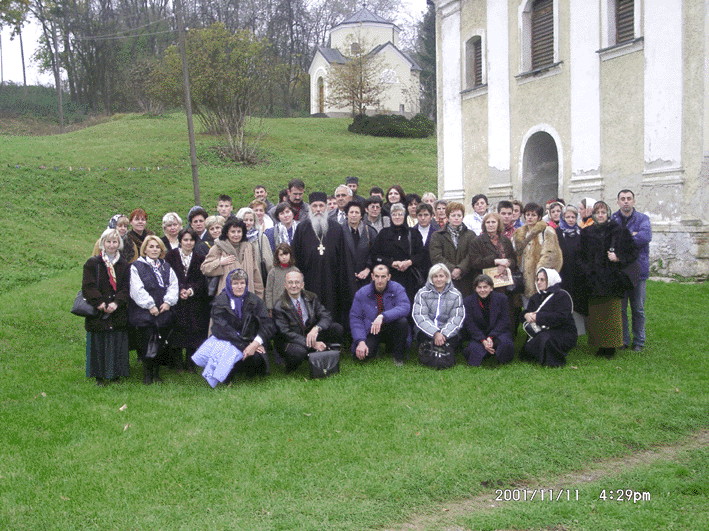 U nedelju, 11. novembra 2001. godine, kada Sveta Crkva slavi spomen na prepodobnog Avramija Zatvornika, nas manastir su posetile dve poklonicke grupe iz Banjaluke; jedna je dosla u organizaciji brata u Hristu Dragana Spasojevica, a druga posredstvom agencije BiS Tours. Poklonici su ucestvovali na Svetoj Liturgiji, a potom prisustvovali molebanu pred cudotvornom ikonom Presvete Bogorodice Lepavinske. Molitve su citali arhimandrit o. Gavrilo i o. Makarije. Za sve poklonike je priredjena trpeza ljubavi, a potom su usledili duhovni razgovori sa o. Gavrilom. U poslepodnevnim casovima poklonici su krenuli natrag u Banjaluku. |