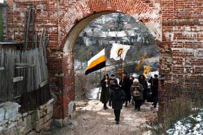 …Svečano, uz pojanje pesama, litija se kreće po gradu Jelcu. Prolazimo pored Crkve Pokrova Majke Božije, koji više nije aktivan. Barjaci se vijore na vetru i okreću se sa Nerukotvorenim Spasiteljevim Likom prema Crkvi, kao da nama Rusima, pokazuju šta smo uradili sa svojim svetinjama, zašto su izložene poruzi od strane bezbožne vlasti. Rusija danas preživljava teška vremena kakva još nije znala historija. Braćo i sestre! Ustanite na molitvu pod otvorenim nebom, kako su to radili naši blagočestivi preci, koji su išli u litiji i činili divna čuda. Samo će tada Angeli i Arhangeli biti sa nama i samo će nas tada Carica Nebeska pokriti Svojim Omoforom. «Raduj se Radosti naša, pokrij nas od svakog zla časnim Tvojim Omoforom» - zapevao je sluga Božiji Sergej i cela litija je s radošću prihvatila Akatist Pokrovu Majke Božije. Dalje smo se uputili naniže, prema Crkvi Prepodobnog Sergeja, u kojem se krstio Prepodobni Nektarije Optinski. Svi učesnici krsnog hoda su koleno-preklono stali na molitvu pored razrušene Crkve, sledeći primer naših slavnih predaka. Molili su se za spasenje Rusije, naše dece, istupajući protiv svetskog poretka, koji nam se lukavo nameće. Tog dana je bilo tačno dve godine otkako smo počeli svake nedelje da idemo u litiju protiv globalizacije (INN, lični kod). Danas ti problemi uznemiravaju značajan deo čovečanstva. Otvorena pljačka prirodnih resursa, eksploatacija zemalja trećeg sveta, i ideološka diktatura mogu imati posledice sa kojim svetski poredak već ne može da izađe na kraj. Svaki novi međunarodni konflikt poslednjih godina zahteva sve više napora i resursa. Jednog predivnog dana novi «domaćini sveta» neće moći da ugase požar, koji su sami i razgoreli.